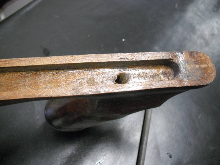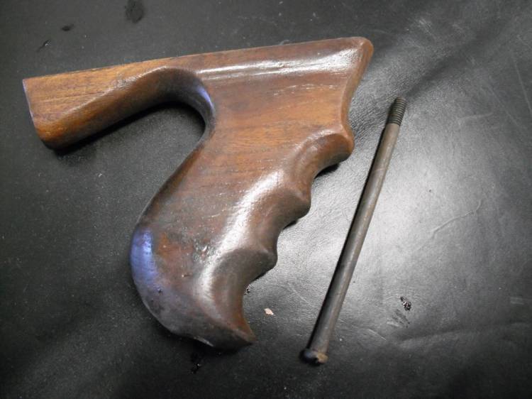 IMPUGNATURA ANTERIORE PER THOMPSON mod.1928 A. IN LEGNO CON FORI LATERALI PER IL FISSAGGIO DELLA MAGLIA PER LA CINGHIA DI TRASPORTO. COMPLETA DI VITE LUNGA PARCHERIZZATA. CONDIZIONI OTTIME, FONDO DI MAGAZZINO. ORIGINALE.