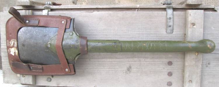 PALA FISSA CON MARCHI E NOME COMBATTENTE (VOLONTARIO SCANDINAVO) CON PORTAPALA IN CUOIO MARRONE (LW). USATA DA TRUPPE DELLA LUFTWAFFE COMBATTENTI A TERRA (FJ-HG). CONDIZIONI MOLTO BUONE.