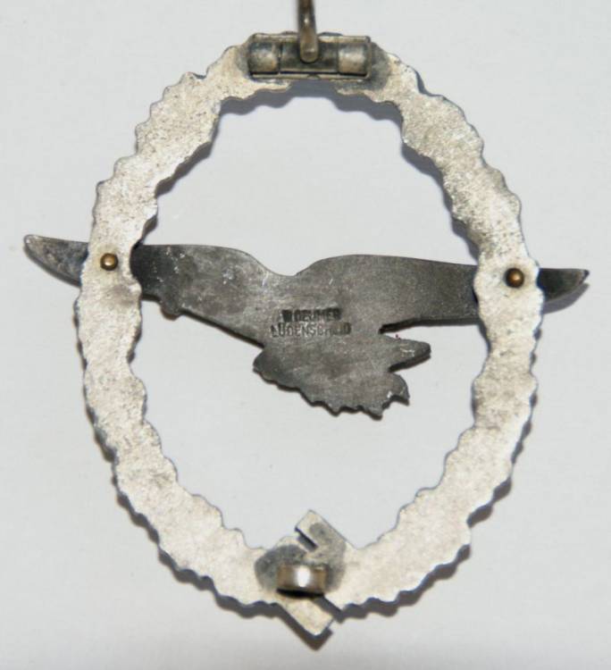 IL ´Segelflugzeugführer-Abzeichen´ E´ UNA DELLE PIU´ RARE DECORAZIONI DELLA LW. QUESTO ESEMPLARE E´ STATO PRODOTTO DA ´Wilhelm Deumer´ (Postfach 161, Lüdenscheid, Wesphalen) ED E´ MARCATO SUL RETRO ´W.DEUMER - LUDENSCHEID´. CONDIZIONI MOLTO BUONE.