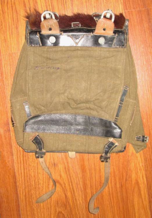ZAINO A BAULETTO CON PATTA FRONTALE IN PELLE DI CAVALLO. COSTRUITO NEL 1942. CONDIZIONI MOLTO BUONE. MARCATO.