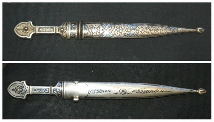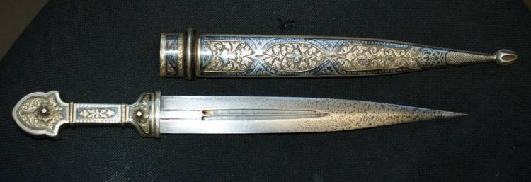 KINDJAL INTARSIATO IN ARGENTO INIZIO SEC. XIX
