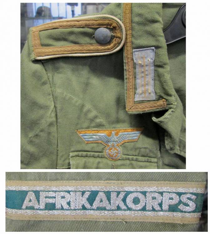 BELLA GIACCA M.36 DEL D.A.K. CON PROFILATURA DA SOTTUFFICIALE E FASCIA ´AFRIKA´. MARCHI INTERNI CON TAGLIE E ´1940´. MOSTREGGIATURA CUCITA D´EPOCA. CONDIZIONI ECCELLENTI.