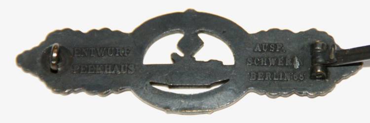 DECORAZIONE ISTITUITA NEL MAGGIO 1944 E CONCESSA AL RAGGIUNGIMENTO DI 15 INCURSIONI SOTTOMARINE IN ACQUE NEMICHE. Ma: ΄ENTWURF PEEKHAUS - AUSF. SCHWERIN BERLIN 68΄. CONDIZIONI PERFETTE.