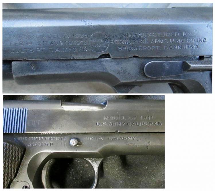 RARA PISTOLA COLT 1911 PRODOTTA DALLA REMINGTON PER L´USMC. MARCHI. SCARRELLA, SCATTA, SERBATOIO AMOVIBILE.