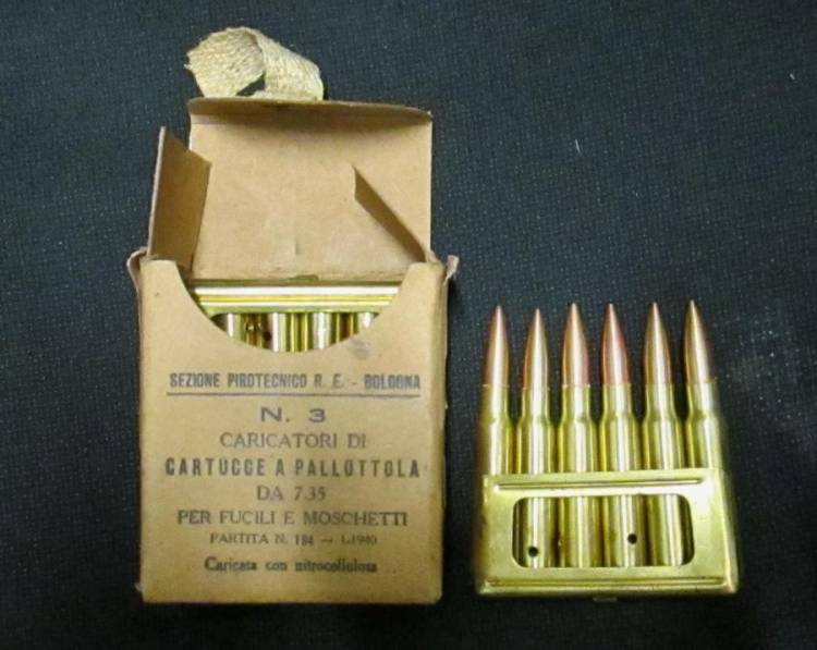 SCATOLA (1940) + 3 PIASTRINE + 18 CARTUCCE (1950) Cal. 7,35x51.