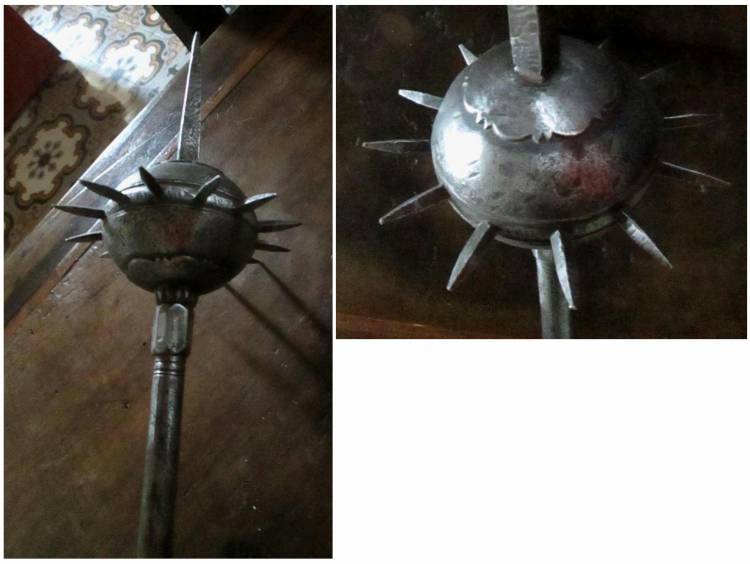 Antica Bulawa (= Mazza a testa tonda dell´Est Europa), chiodata nella testa sferica, simbolo di potere e arma efficace. Caratteristica di una vasta area, dai paesi balcanici fino alla Persia.