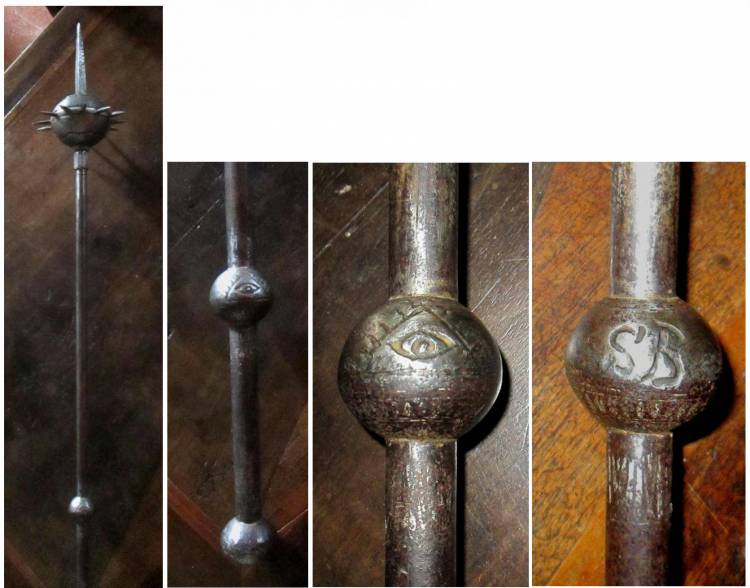 Le incisioni (´S.B.´ e ´Occhio di Dio´) sulla sfera superiore dell´impugnatura e la chiodatura la pongono in area ungherese.