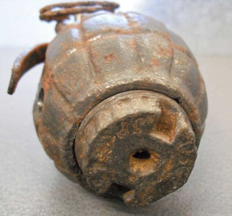 BOMBA A MANO INGLESE TIPO MILLS n°24 MKII. COMPLETA. BUONE CONDIZIONI. MARCHI E SIGLA ANCORA VISIBILI SUL FONDO DEL CORPO DELLA GRANATA.