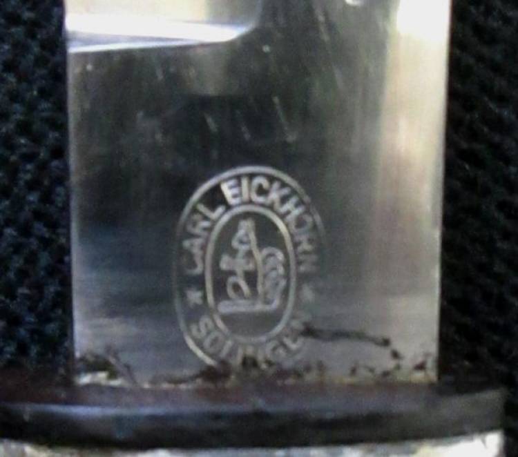 RARA VERSIONE DELLA MOD.38 PER IL TAGLIO DELLA LAMA (MOD. 1940). MARCATA SUL TALLONE ´Carl Eickorn-Solingen´. COMPLETA DI FODERO. CONDIZIONI DISCRETE.