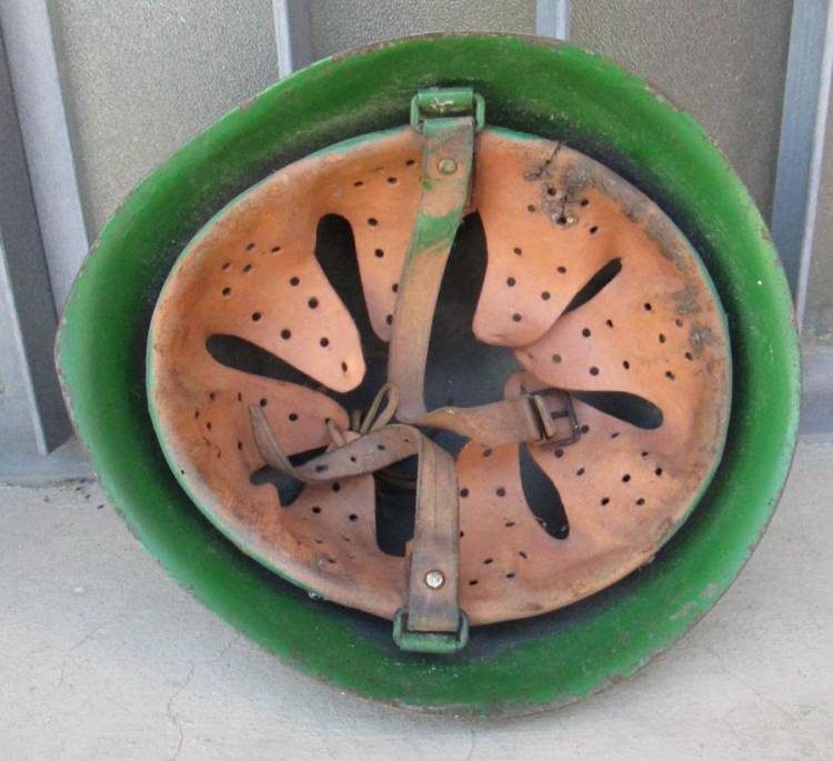 ELMETTO DELLA MARINA MILITARE ITALIANA IN COLORAZIONE VERDE BOTTIGLIA E FREGIO BIANCO.