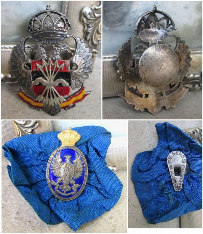 SPLENDIDO LOTTO DI OGGETTI APPARTENUTI AL LEGIONARIO DELLE CAMICIE NERE (______________ - SARTEANO, SIENA) RAFFIGURATO NELLA CORNICETTA D´ARGENTO, CON L´OCCHIELLO DEI SAVOIA E QUELLO D´0NORE (RARO) DELLA FALANGE SPAGNOLA OTTENUTO PER LA PARTECIPAZIONE ALLA GUERRA DI SPAGNA.