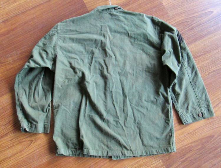 CAMICIA USA/USMC M.43 IN COTONE VERDE SPIGATO CON I GRADI DA SOTTUFFICIALE. CONDIZIONI MOLTO BUONE.