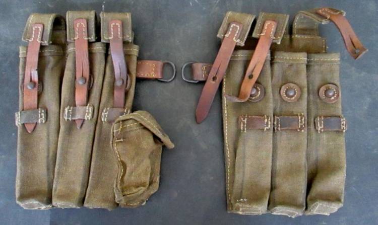 BELLA COPPIA DI PORTACARICATORI DI MP.38/40 IN TELA VERDE. MARCATI. CONDIZIONI MOLTO BUONE.