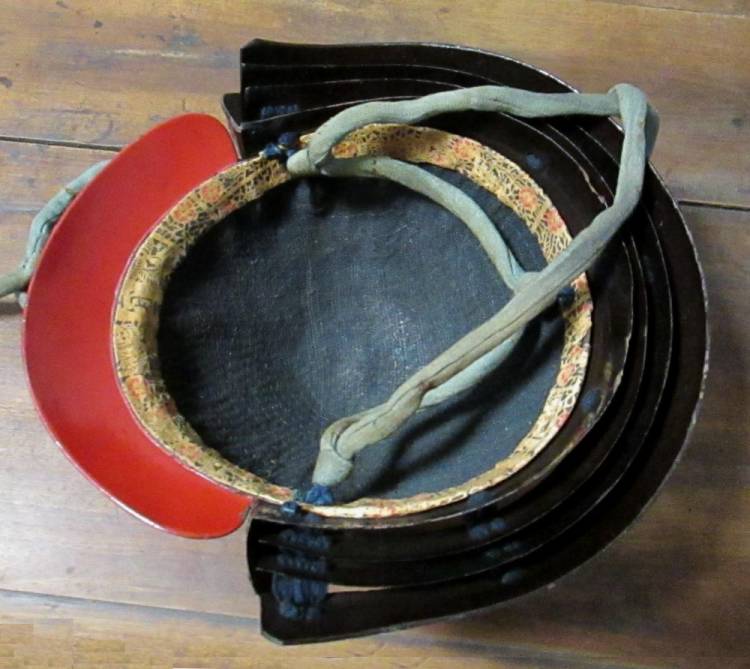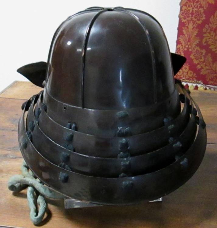 ELMO GIAPPONESE PER ARMATURA DA SAMURAI DEL A 6 LAMINE. PERIODO EDO (SEC. XVIII-XIX). CONDIZIONI MOLTO BUONE.