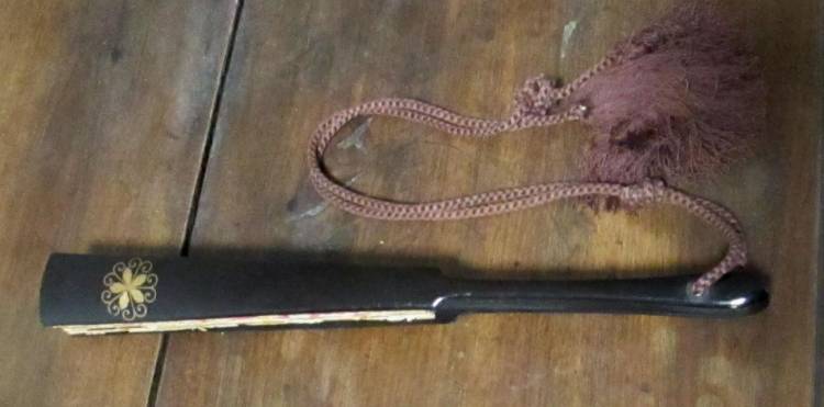 BELLISSIMO TESSEN (VENTAGLIO DA GUERRA) A 9 LAME (Menhari-Gata) IN ACCIAIO, CARTA E LEGNO LACCATO.
