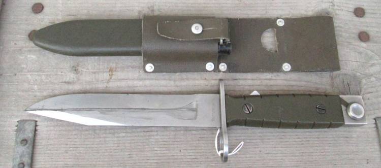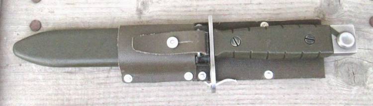 BAIONETTA SVIZZERA MOD.86 PER FUCILE MITRAGLIATORE StGw.90. PRODOTTA DALLA ´VICTORINOX´. FODERO IN MATERIALE PLASTICO VERDE. COMPLETA DI DRAGONA.