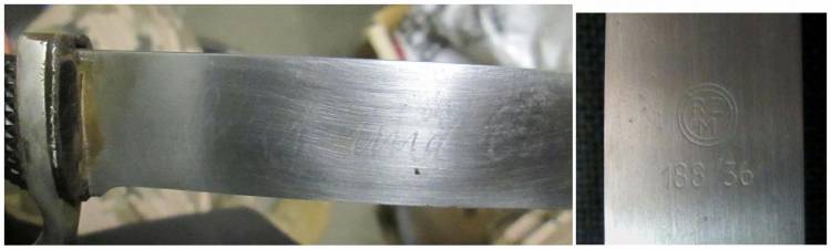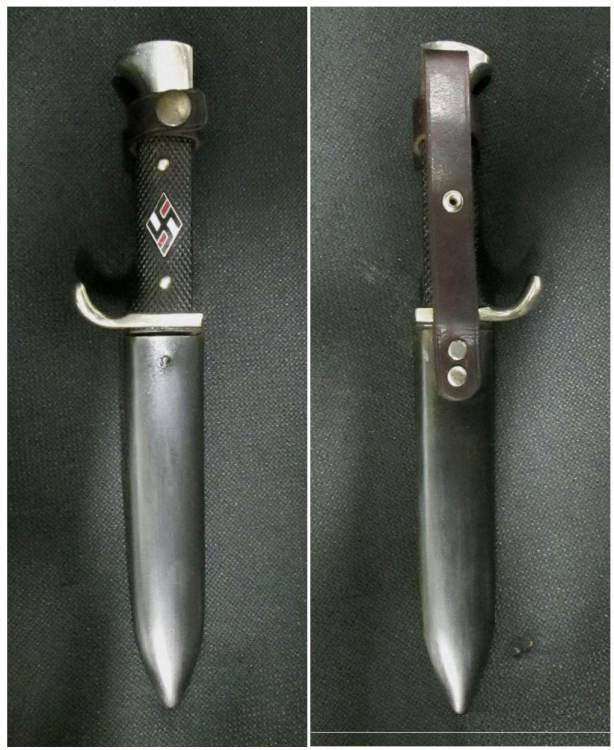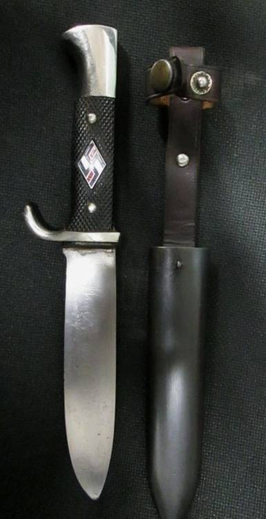 COLTELLO DELLA ´DEUTSCHES JUNGVOLK in der HITLER JUGEND´ DI SECONDO TIPO (CON IL MOTTO ´BLUT und EHRE´ SULLA LAMA. RIPORTA IL MARCHIO ´RZM - 188/36´. CONDIZIONI BUONE.
