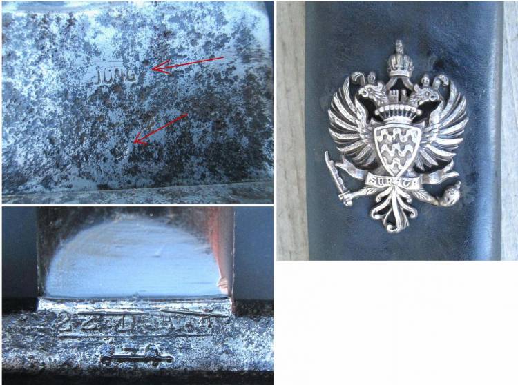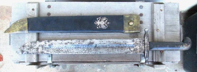 DAGA AUSTRIACA DA PIONIERE MOD.1860 CON STEMMA NOBILIARE APPLICATO SUL FODERO. MARCATO ´JUNG´ E PUNZONE CON AQUILA BICIPITE.