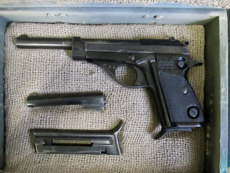 RARISSIMA PISTOLA BERETTA MOD.72 ACQUISTATA DA ISRAELE PER I SERVIZI SEGRETI. RIPORTA I PUNZONI ISRAELIANI ALL´INTERNO DI UNA GUANCETTA. VENIVA FORNITA CON UNA SECONDA CANNA E CON LA SCATOLA DI CONTENIMENTO IN LEGNO. NE ESISTEVA UNA SECONDA VERSIONE, SEMPRE IN SCATOLA, PROVVISTA DI SILENZIATORE. CONDIZIONI MOLTO BUONE.