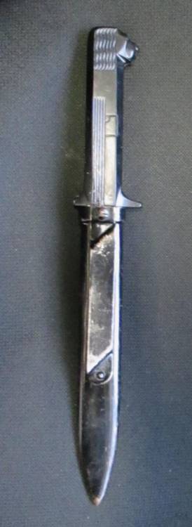 IMPUGNATURA IN BACHELITE NERA (PICCOLI RESTAURI SULL´ELSA). LAMA PERFETTA. COMPLETO DI FODERO. IMPUGNATURA CON TERMINALE A FORMA DI TESTA DI LEONE STILIZZATA, FASCIO LITTORIO INCISO SU AMBO I LATI. UNO DEI PUGNALI ITALIANI PIU´ INTERSSANTI DAL PUNTO DI VISTA ARTISTICO, IN STILE MARCATAMENTE FUTURISTA. CONDIZIONI MOLTO BUONE.