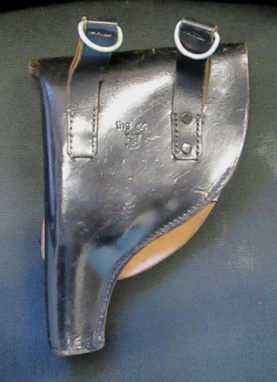 BELLISSIMA FONDINA PER LANCIARAZZI LP.42 COMPLETA DEI SUOI 5 RAZZI. MARCATA ´lhg 44´ (Gustav Genschow-u. Co. AG, Abteilung LederwarenFabriken, Alstadt-¬Hachenburg, Westerwald).