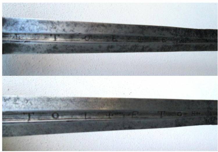 LA LAMA, PRODOTTA IN SPAGNA, PORTA SUI DUE LATI DELLE CROCI PATENTI E LA SCRITTA ´TOLETO´.