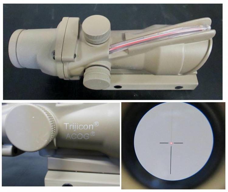 OTTICA TRIJICON (CLONE) PER LA FAMIGLIA DEGLI M.4/M.16, 4x32 CON RETICOLO ´BDC´ ILLUMINATO IN ROSSO. COLORAZIONE SABBIA. NUOVO. VISIONE PERFETTA.