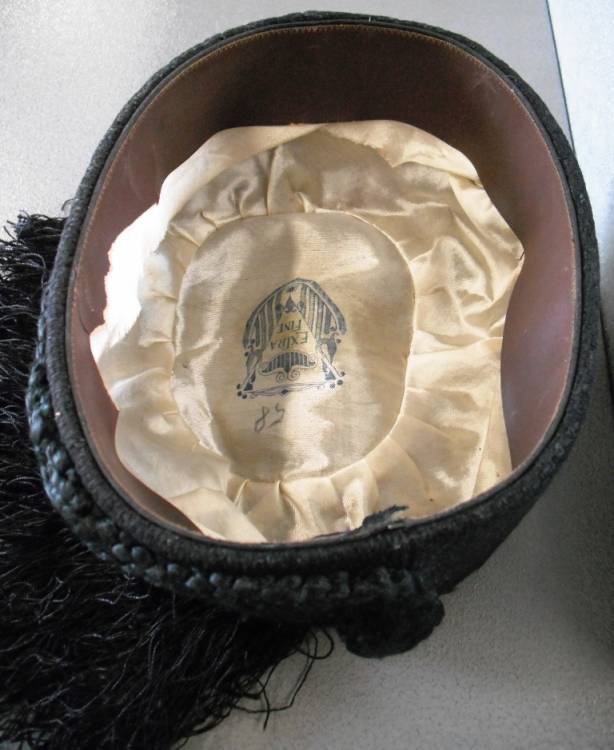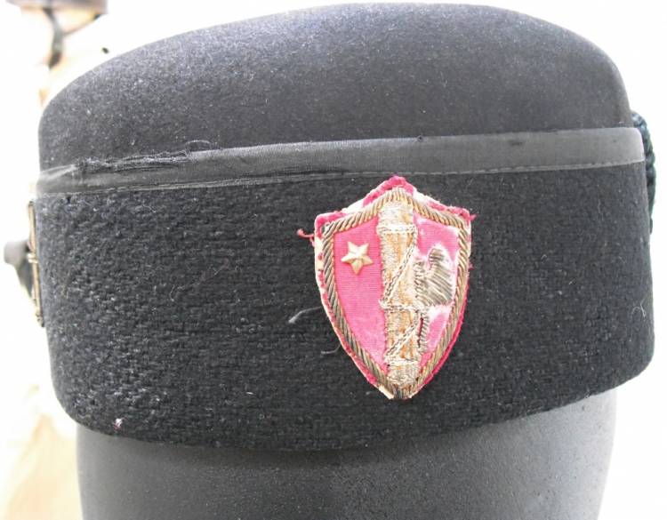 FEZ DA FIDUCIARIO DI GRUPPO RIONALE DEL PARTITO NAZIONALE FASCISTA. IN FELTRO PETTINATO CON FASCIO LITTORIO RICAMATO IN CANOTTIGLIA DORATA SULLA PARTE FRONTALE; DISTINTIVO INDICATIVO DI GRADO RICAMATO IN CANOTTIGLIA DORATA SU FONDO ROSSO CON STELLA METALLICA DORATA. FODERATO ALL´INTERNO IN SETA BIANCA CON LOGO DI FABBRICA E ISCRIZIONE "EXTRA FINE". Tg. 58. ALLUDA IN CUOIO MARRONE TESTA DI MORO. BUONE CONDIZIONI.