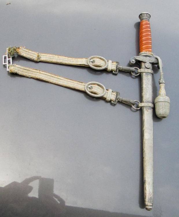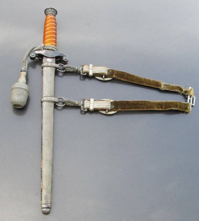 DAGA MOD.35 DA UFFICIALE HEER COMPLETA DI SOSPENSIONI E TRODDEL. PRODUZIONE ‘F.W.Höller – Solingen’. CONDIZIONI MOLTO BUONE.