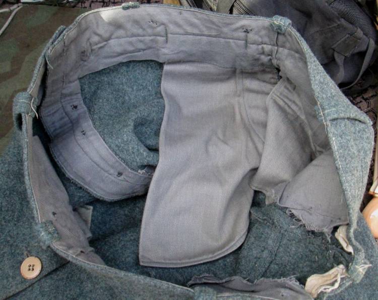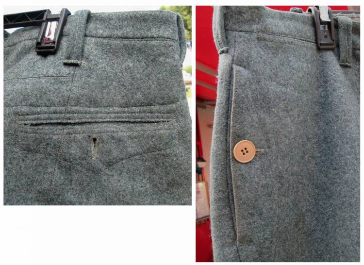 PANTALONI M.44 DA COMBATTIMENTO PER TRUPPA/UFF. DELLA R.S.I. IN LANA VERDE. COMPLETI DI GHETTE, CUCITE SUL CAMPO DIRETTAMENTE SUI PANTALONI. FODERA GRIGIA REGOLAMENTARE. TAGLIA GRANDE.
