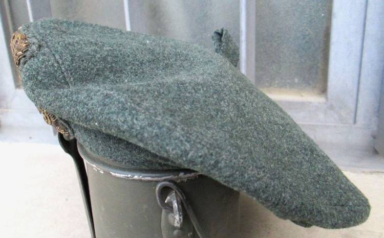 BASCO CON GIRO DI BITTA DELLA X^ MAS CON FREGIO IN CANUTIGLIA. OVALE IN BLU PER TRUPPE COMBATTENTI A TERRA. INTERNO IN COTONE GRIGIO SPIGATO REGOLAMENTARE.
