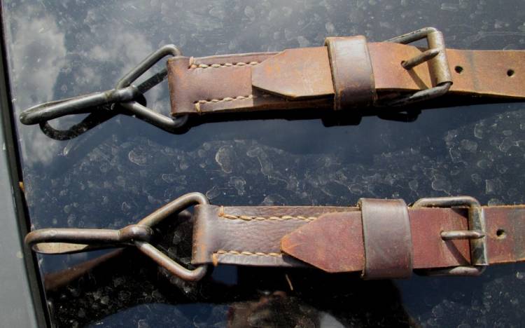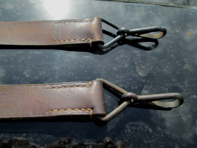 CINGHIE IN CUOIO PER TRASPORTO A SPALLA DEL TREPPIEDI ´LAFETTE´ PER MG.34/42.