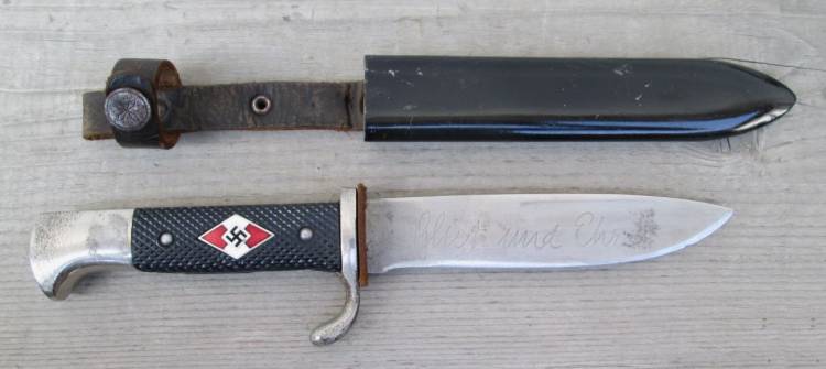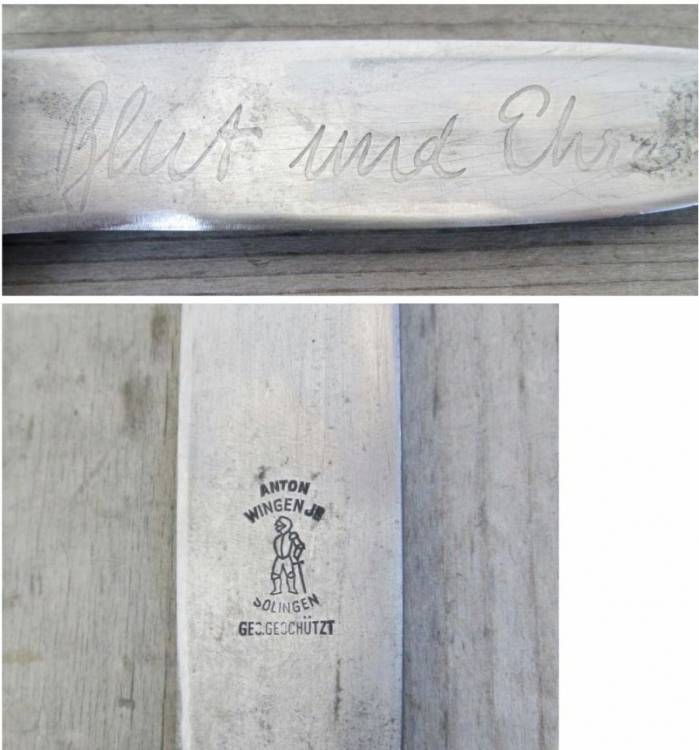 COLTELLO DELLA HITLER JUGEND DI 2° TIPO CON MOTTO ´BLUT UND EHRE´ INCISO NELLA LAMA. DALL´ALTRO LATO PUNZONE CON IL FABBRICANTE ´ANTON WINGEN JR - SOLINGEN´.