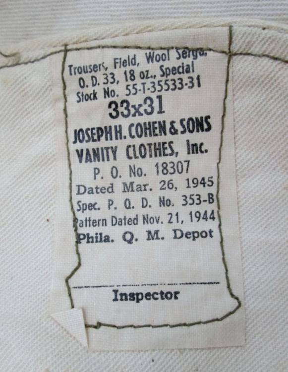 USA PANTALONI ARMY ´MUTARD´ Mod. 1944, ‘1945’. 170,00
