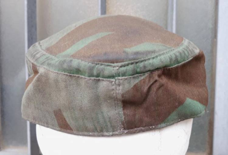 BERRETTO MIMETICO A SCHEGGE PER COMBATTENTI A TERRA DELLA LW (FELDDIVISIONEN). EVIDENTI TRACCE DELL´AQUILA ANTERIORE. TELA MIMETICA DEL TIPO PER I GIACCONI A DUE TASCHE FD (NO ZELTBAHN !!). TAGLIA: 59.