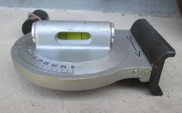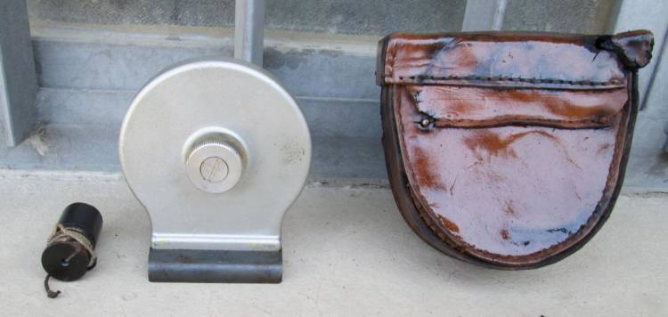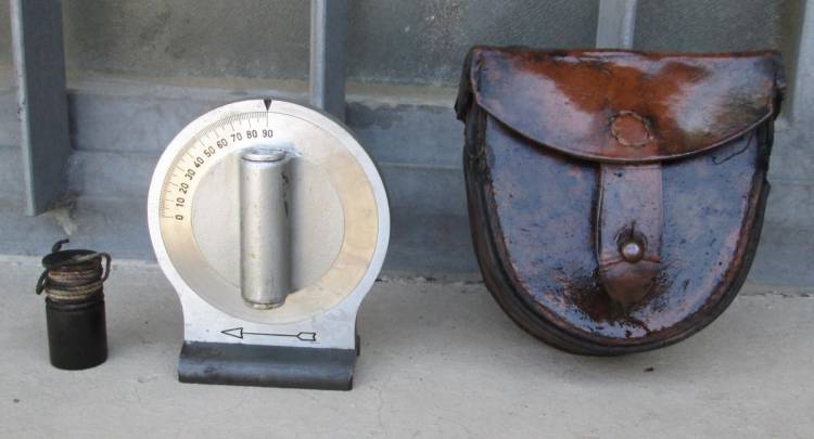 STRUMENTO DI POSIZIONAMENTO A BOLLA PER MORTAIO DA 81 mm. DELLA ´OTO´ CON CUSTODIA DI CUOIO (INDURITO) E FILO A PIOMBO.