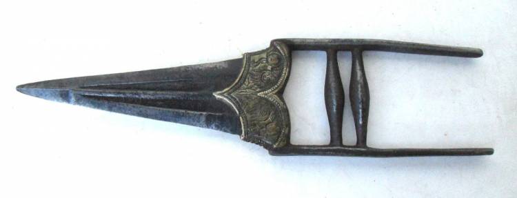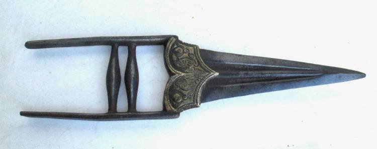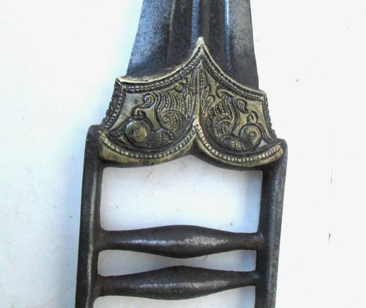 KATAR INDIANO DELLA REGIONE DEL MISORE USATO PER IL COMBATTIMENTO O LA CACCIA ALLA TIGRE. BELLA ELSA IN OTTONE CON INCISIONI A FLORAMI. PRODOTTO NEL XVII-XVIII SECOLO. BUONE CONDIZIONI.