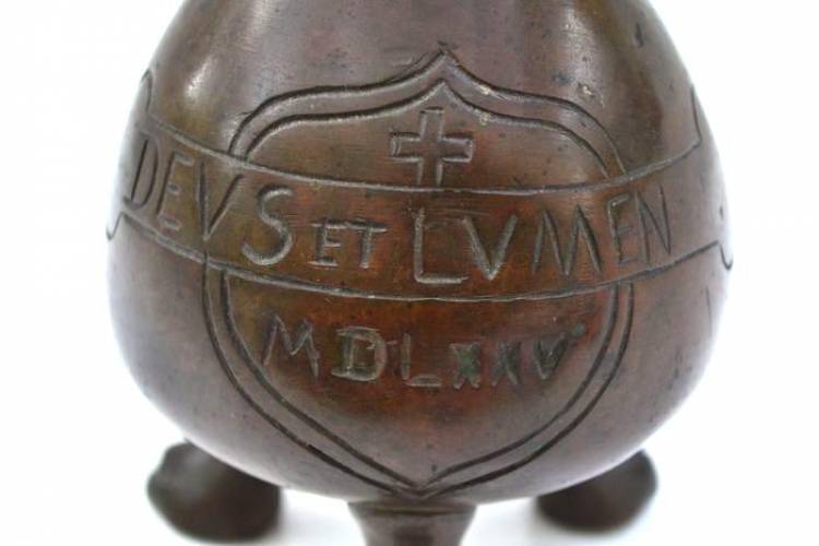 Acquamanile in Bronzo con Iscrizione centrale ‘Deus et Lumen MDLXXV’. Sec.XIX.