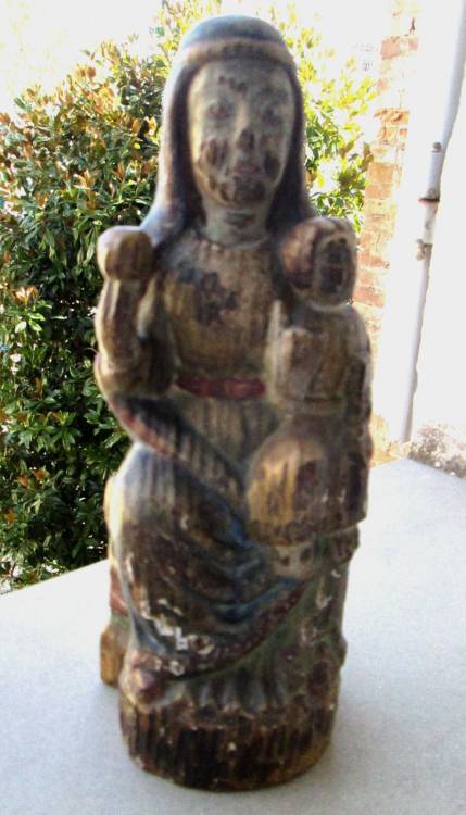 Scultura in Legno ‘Madonna in trono con Bambino’. Policroma. Spagna, Sec. XV.