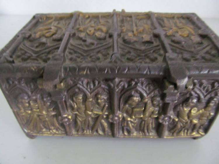 Pesante Cassetta in Bronzo con scene bibliche. Provenienza: Europa;