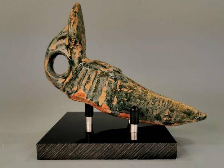 0015 Lampada a Olio Seljuk in Terracotta smaltata. Turchia, sec. XII.