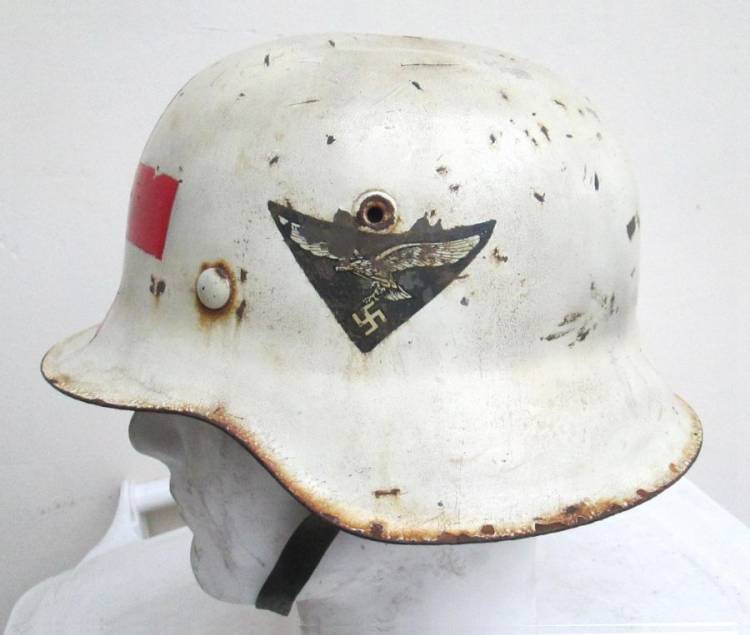 RARO ELMETTO M.42 MONODECAL DELLA LUFTWAFFE/ROTE KREUZ MIMETICO BIANCO.
