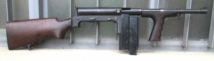 RARISSIMO FUCILE MITRAGLIATORE AMERICANO PRODOTTO TRA IL 1942 ED IL 1943 IN SOLI 15000 ESEMPLARI IN CAL. 9mm PER SOSTITUIRE IL TROPPO PESANTE THOMPSON. L´INCARICO FU DATO ALLA ´UNITED DEFENCE SUPPLY CORP. - NEW HAVEN, CONN.´. VECCHISSIMA INERTIZZAZIONE, SCARRELLA, SCATTA, SERBATOIO AMOVIBILE. CONDIZIONI ECCELLENTI. DOPPIO SERBATOIO.