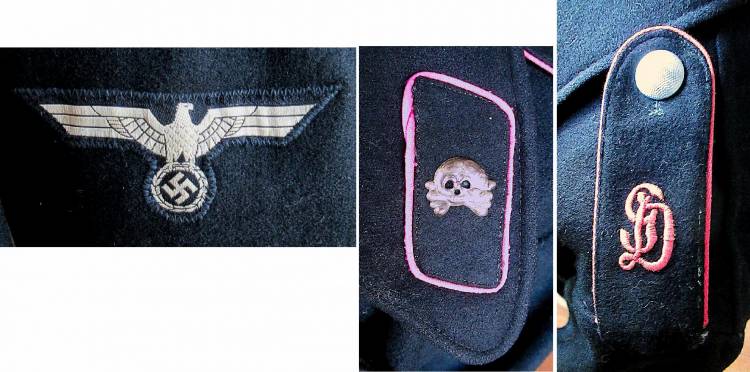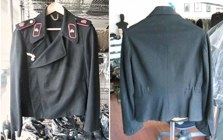 SPLENDIDO GIACCHINO PANZER MOD. 44 IN LANA NERA DELLA DIVISIONE ´GROSSDEUTCHLAND´. TROVATO NEI ´CENCI´ A PRATO INSIEME AI PANTALONI PANZER ML.DI.3275 NEI PRIMI ANNI ´90 DA GIANLUCA ERCOLI (NOTISSIMO RICERCATORE E COLLEZIONISTA).
