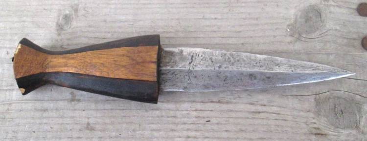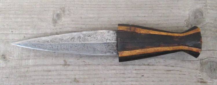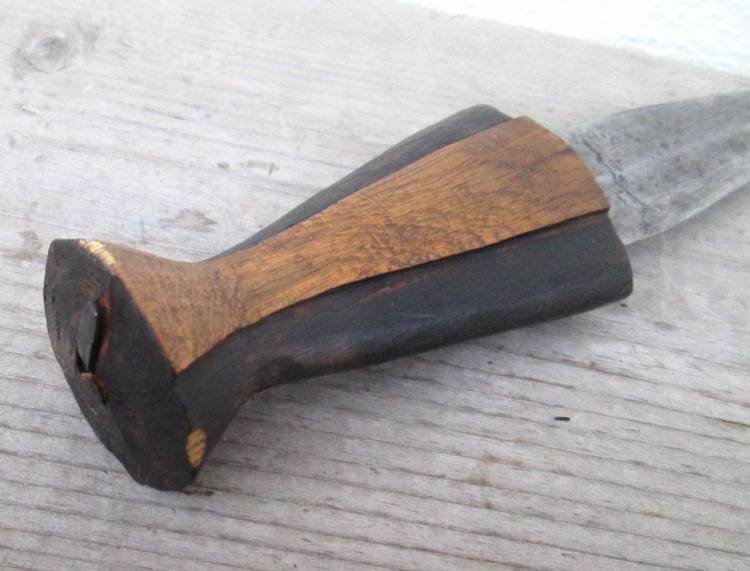 CORTO PUGNALE TRADIZIONALE DEL SUDAN CON IMPUGNATURA IN LEGNO E LARGA LAMA (OTTIMO ACCIAIO). MANCANTE DI FODERO.
