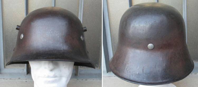 ELMETTO TRANSIZIONALE HEER M.31 MONOFREGIO SU SCAFO M.16 AUSTRIACO MIMETICO DUE COLORI, MARRONE E VERDE. INTERNO MOD.31. € 1.200,00