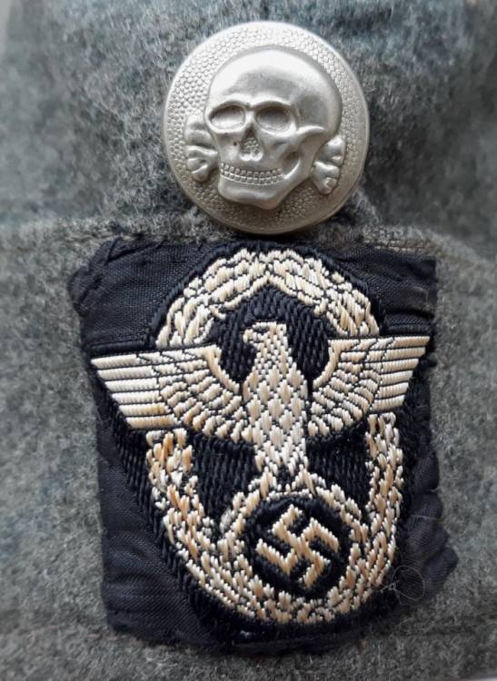 BELLISSIMA BUSTINA DELLA WAFFEN SS POLIZEI PRODOTTA NEL 1941 (VARI MARCHI). FREGIO FRONTALE IN Be.Vo. E BOTTONE ´TOTENKOPF´. CONDIZIONI ECCELLENTI.