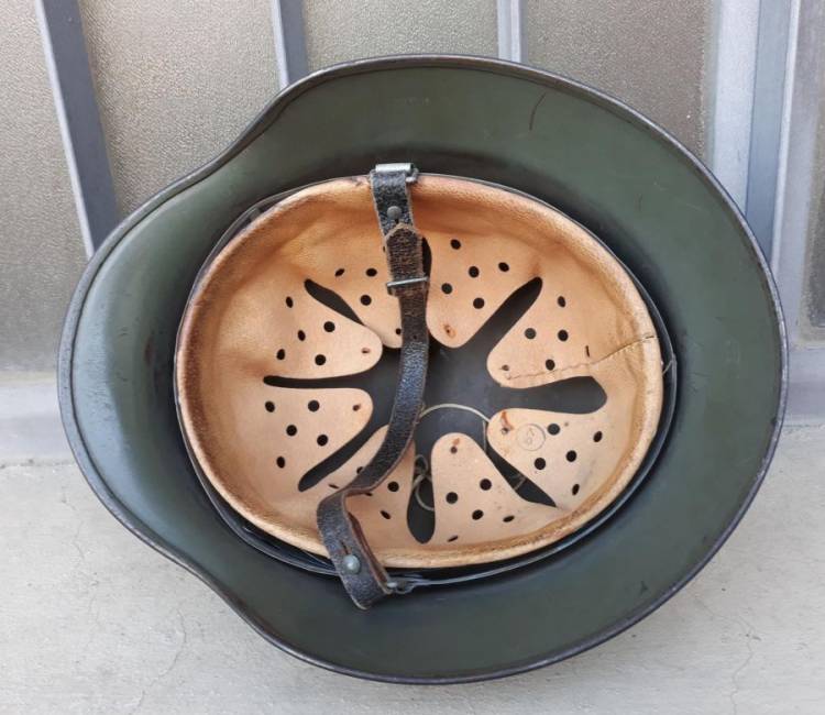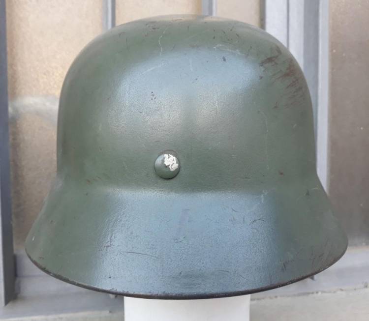 BELLISSIMO ELMETTO HEER M.35 BIDECAL CON VERNICE VERDE MELA DI PRIMO TIPO. LE DECAL RISULTANO CANCELLATE (PURTROPPO). RARO DA TROVARE IN VERNICE ORIGINALE. RIPORTA SULLA FALDA INTERNA IL NOME DEL SOLDATO E L´ANNO (1939).