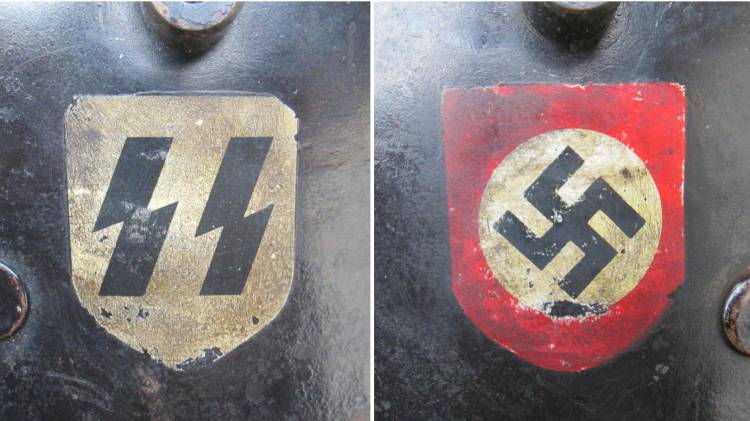 ELMETTO M.18/34 SS-VT BIDECAL IN VERNICIATURA NERA. CONDIZIONI ECCELLENTI.