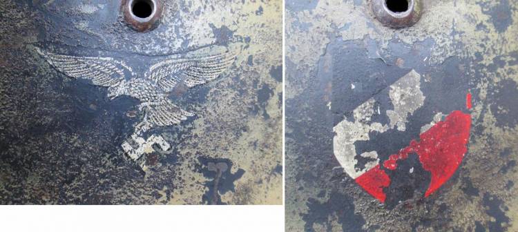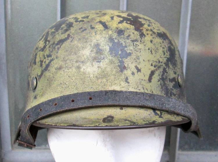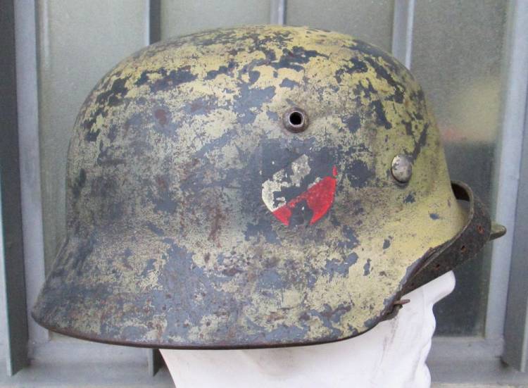 BELLISSIMO ELMETTO M.35 DELLE FELDDIVISIONEN BIFREGIO (AQUILA PRIMO TIPO) MIMETICO GIALLO/VERDE IN ZIMMERIT. CONDIZIONI MOLTO BUONE.
